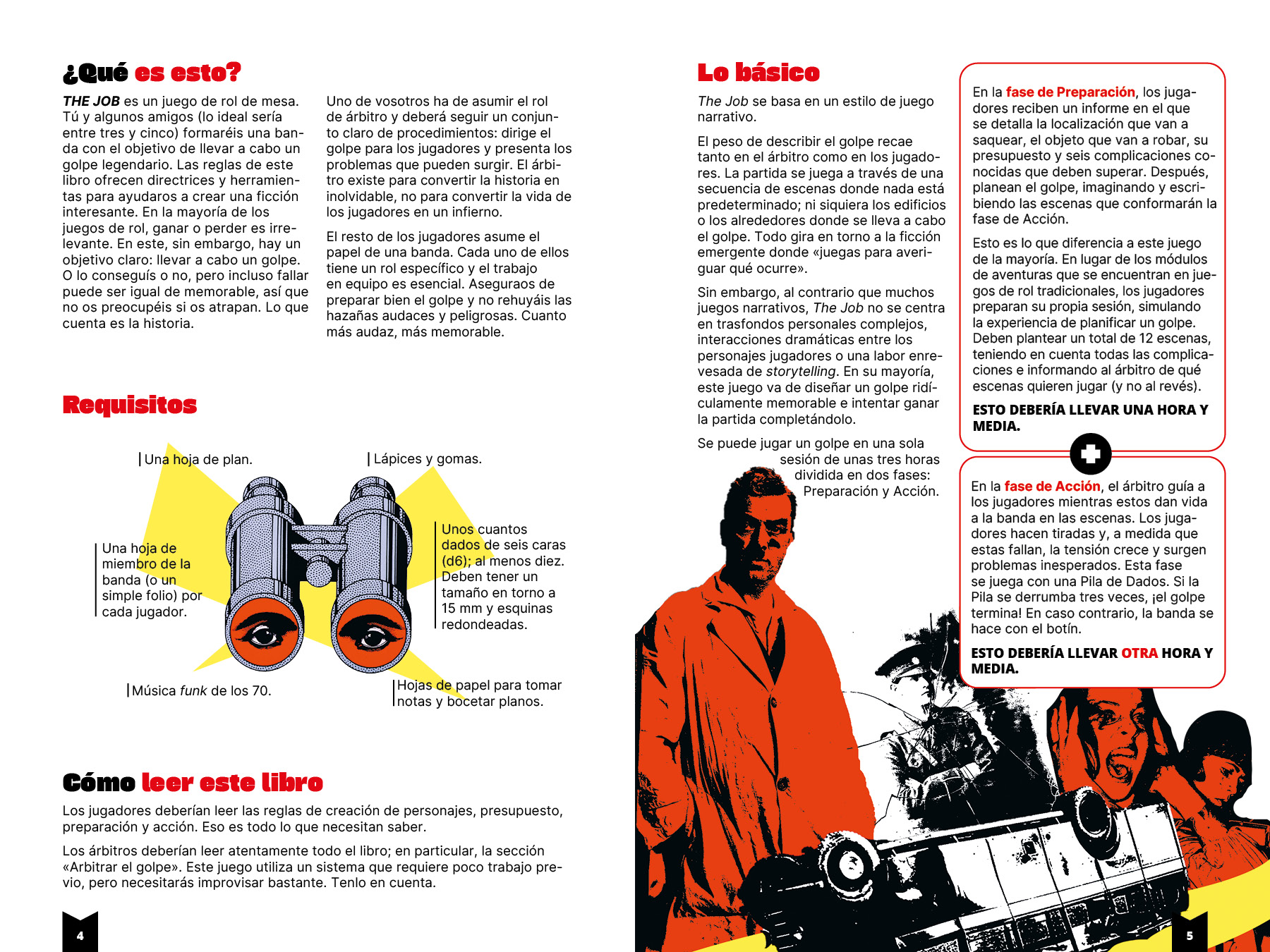 THE JOB es un juego de rol. En los JdR convencionales, ganar o perder es irrelevante. Aquí, sin embargo, hay un objetivo claro: llevar a cabo un golpe. O lo conseguís o no. Este juego se divide en dos fases: preparación y acción. En la primera, los jugadores diseñan su plan maestro. En la segunda, lo ponen en marcha y descubren cómo de (mal) preparados estaban. Para jugar, utilizaréis una inestable Pila de Dados que podría derrumbarse con cada acción fallida, poniendo en riesgo todo el golpe si se diese el caso.