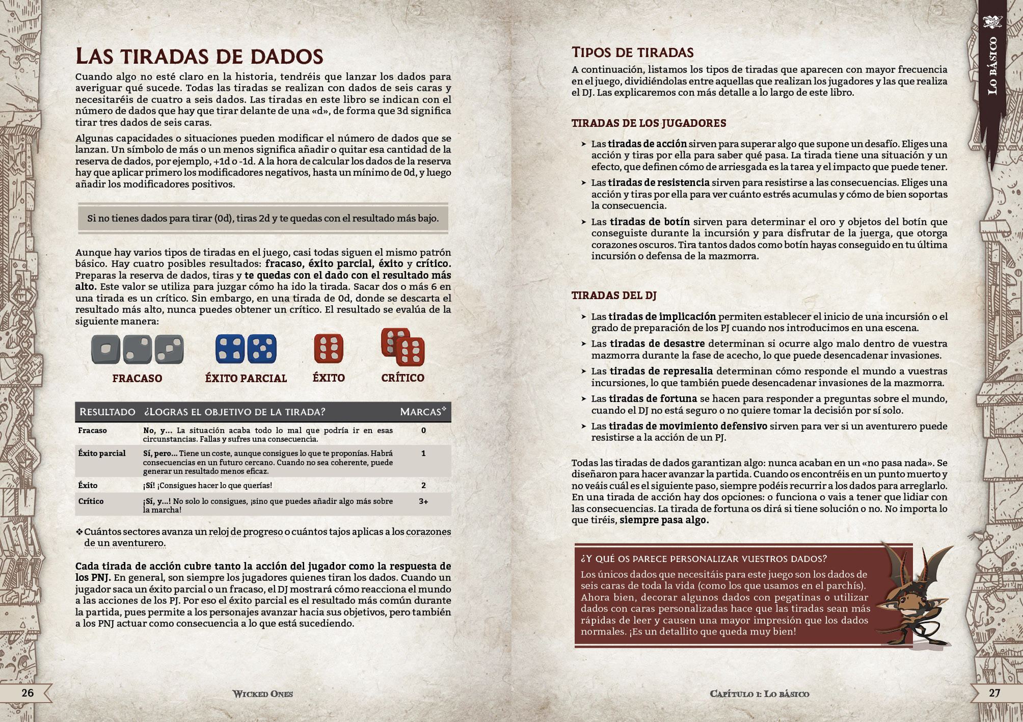 Sin embargo, no sois solo monstruos de fantasía que causan caos y estragos al azar. Los monstruos van y vienen, pero la mazmorra permanece; es lo que les une y les da un propósito. Diseñaréis vuestra mazmorra con detalle a medida que se construye y luego le daréis vida, interpretando diversos acontecimientos, como celebrar una juerga tras una incursión victoriosa, el desastre que supone derrumbarse un túnel sobre vuestros esbirros o el enfrentamiento con los aventureros que se atreven a profanar vuestro santuario. Vuestra mazmorra es la protagonista de esta historia.